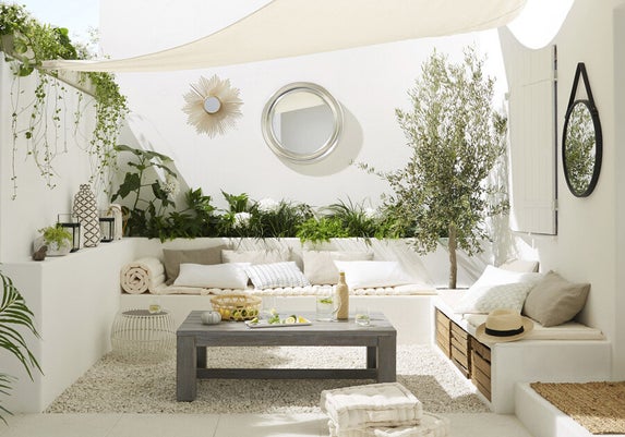 Wie mijmert er niet weg bij het horen van namen als Ibiza, Mykonos of de Caraïben? Juist, je ziet jezelf in een fantastisch strandpaviljoen met prachtige natuurlijke materialen en een heerlijke cocktail. Ook thuis kan je dat fijne Ibiza-gevoel creëren. Je kan je tuin, terras, balkon of dakterras inrichten met een prachtige tuinset met kussens met mooie prints, een buitenvloerkleed, een mega parasol die je van heerlijke schaduw voorziet én een daybed dat zorgt voor het eilandgevoel in je eigen tuin.